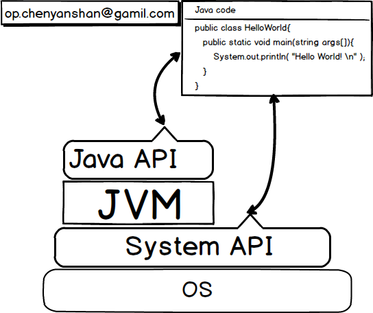 如图所示,如果调用的API都是JVM所提供的,那么编译之后的class文件依旧能在搭建了JVM的平台上面运行。